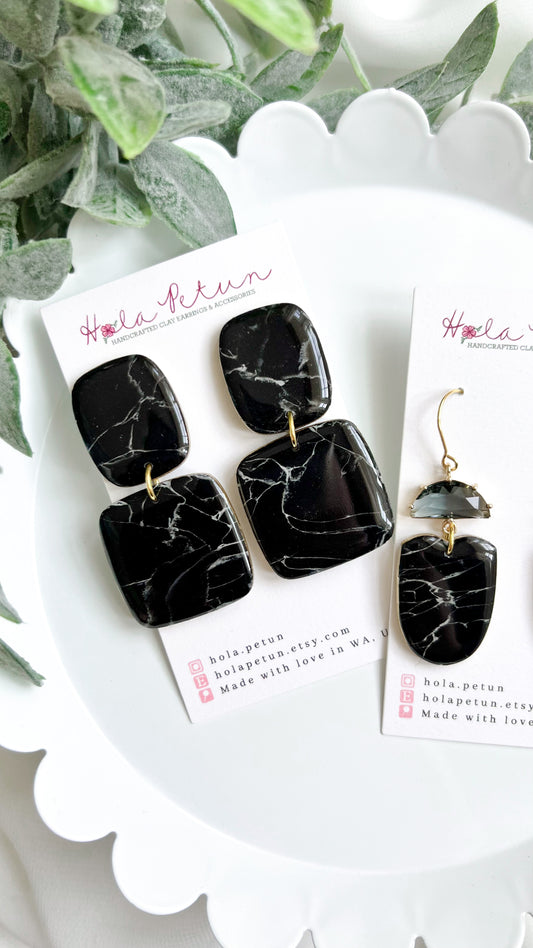 Marbled Black & White Earrings